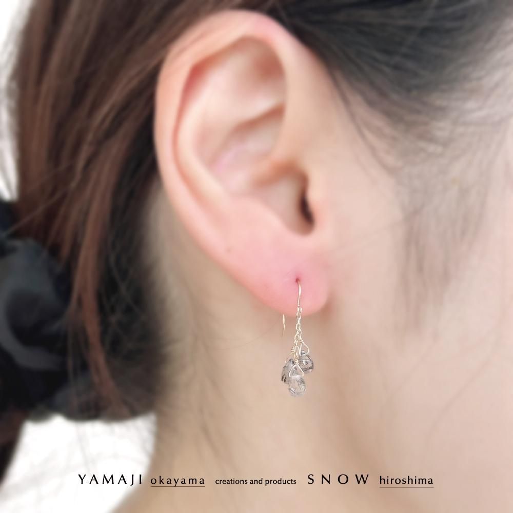 ◆ 品名:「ファーストティア」ブリオレットストーンピアス(ブラックルチルクオーツ)