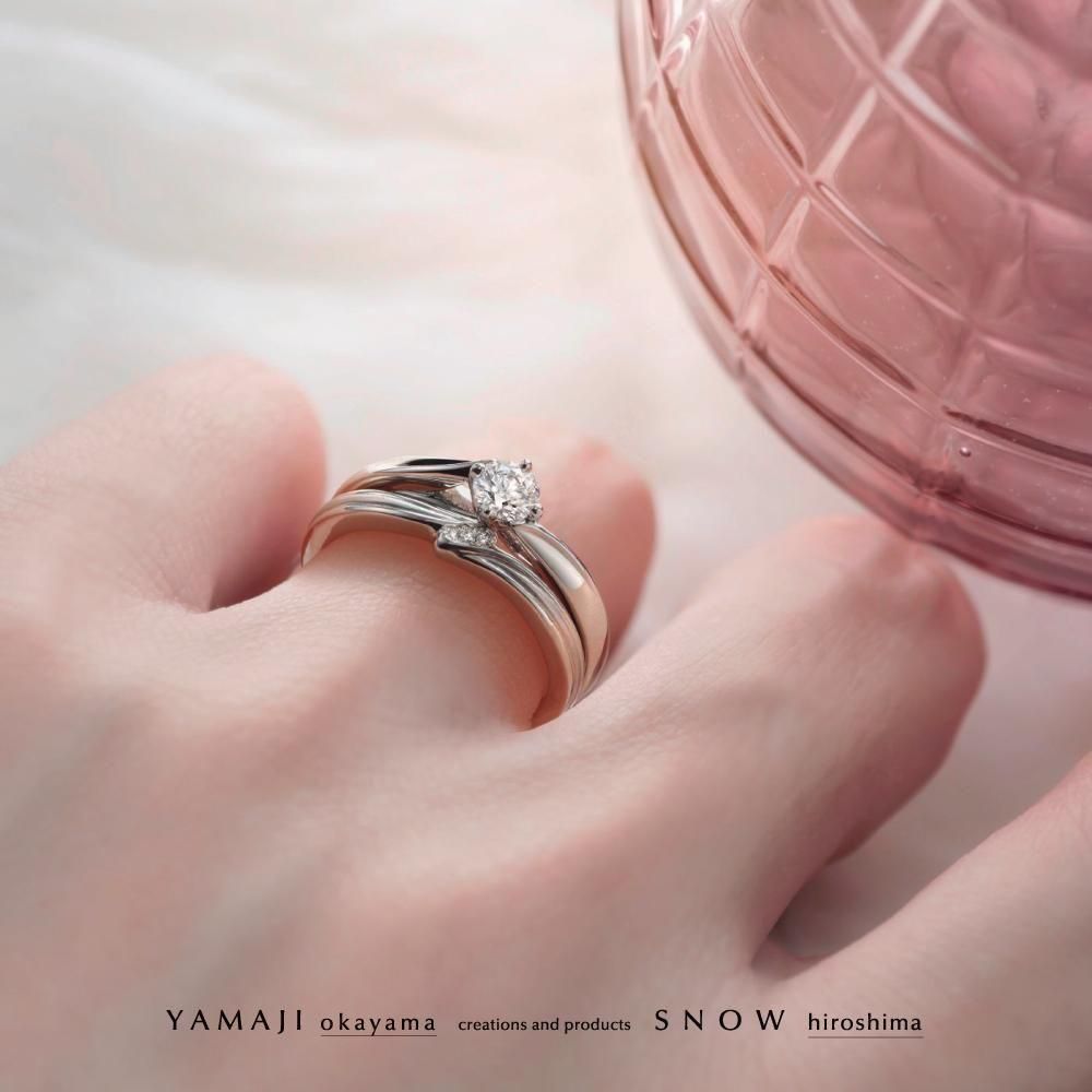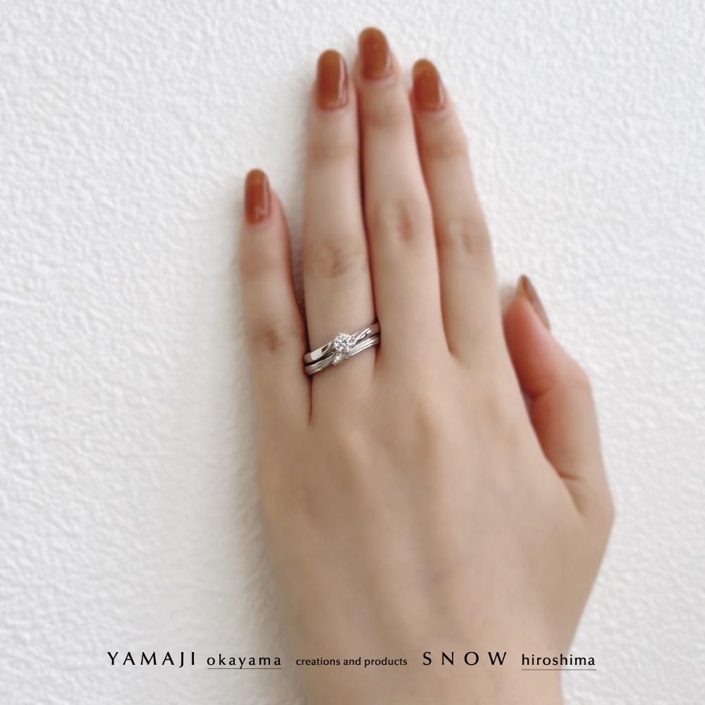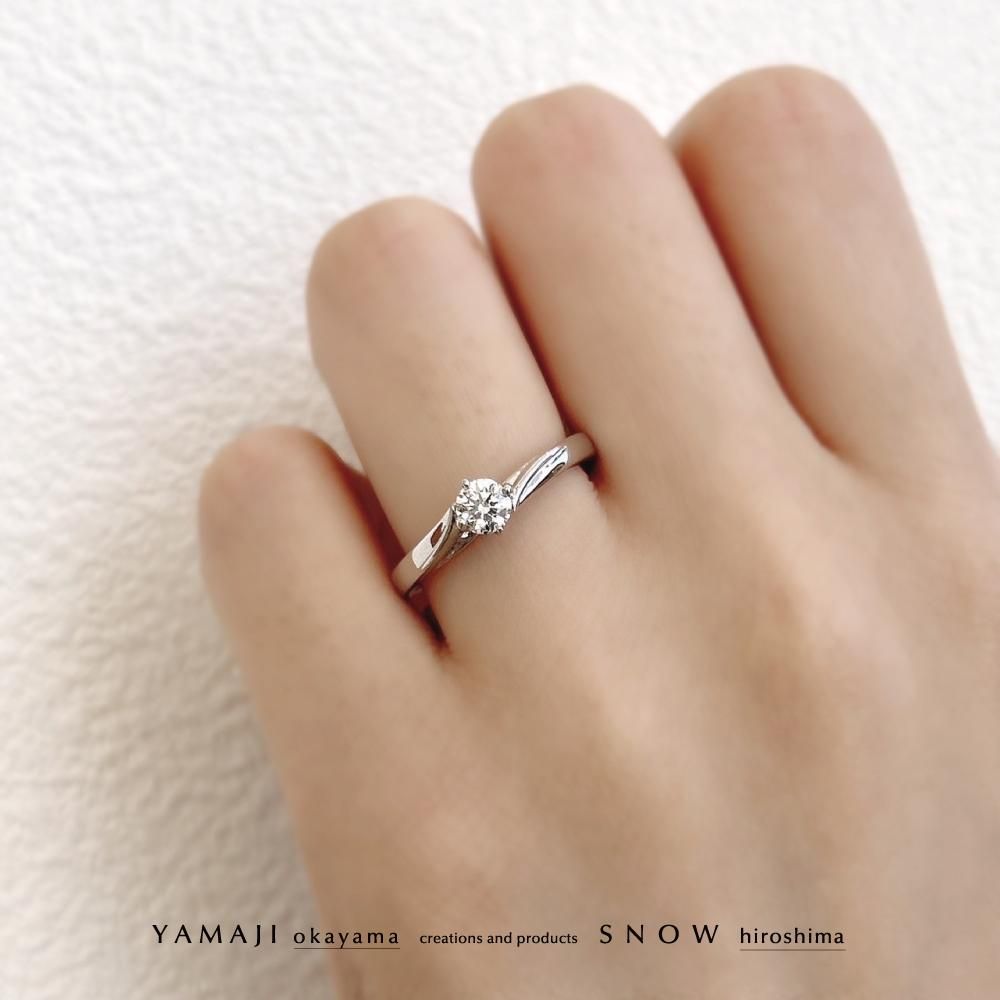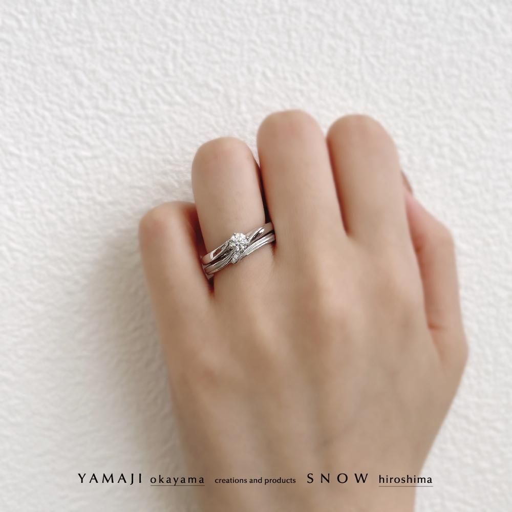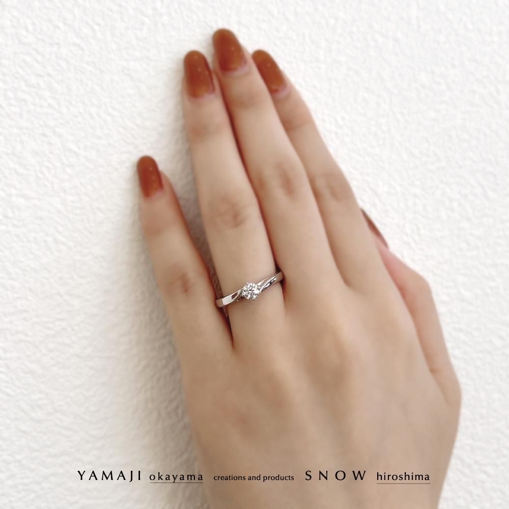 婚約指輪はダイヤの出っ張りが少ないフラット構造なので、「使いやすいな!」と、大人花嫁に人気。