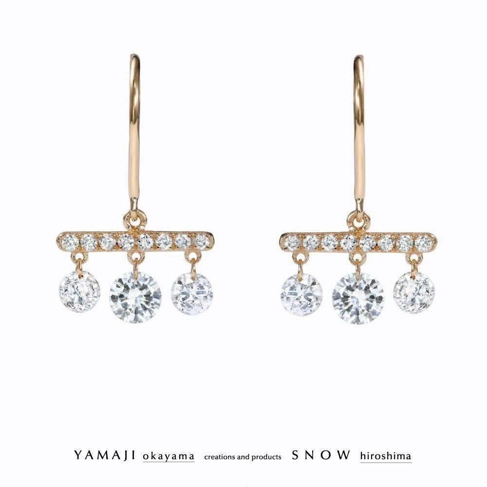 ゆらゆらと揺れる3つのダイヤモンドは、まるで雪解け水のようにクリアなラインを描きます。