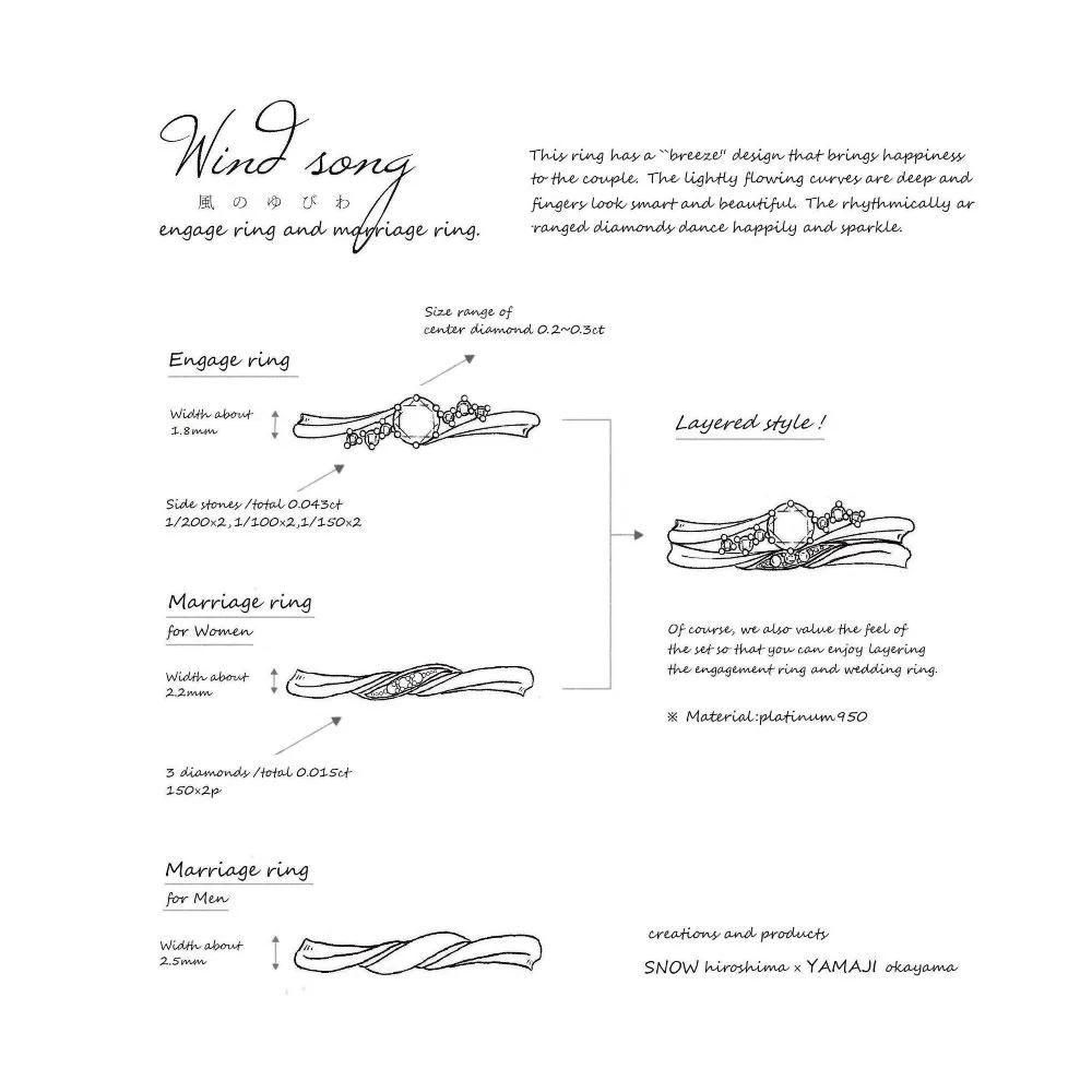 ふたりに幸せを告げる「そよ風」をデザインしたこの指輪。