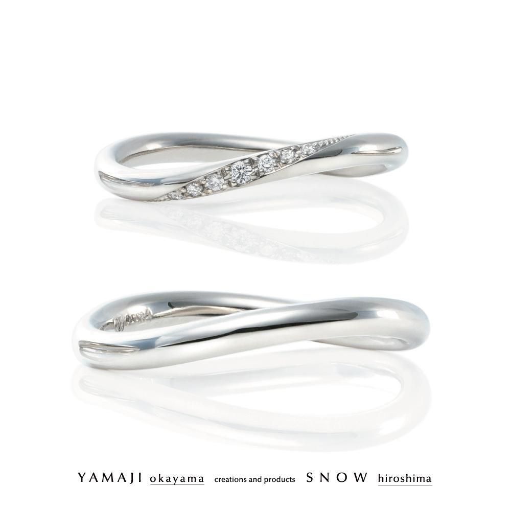 指をすっきり綺麗にみせるツイストラインは、横から見ると「∞」のシルエットに。「∞=永遠」という意味を込め、すうっと手になじむ優しい着け心地にこだわったデザインリングです。