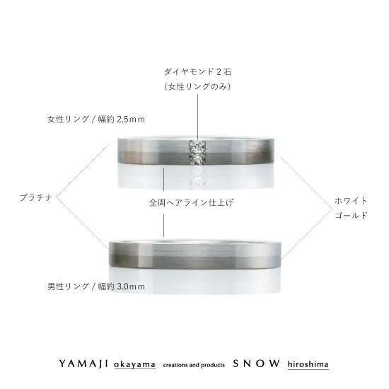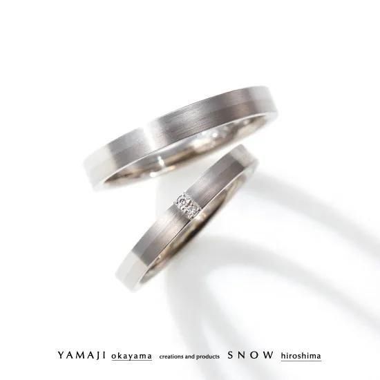 プラチナとホワイトゴールド、2種類の金属をぴったりとつなぎ合わせたコンビネーションのマリッジリング。