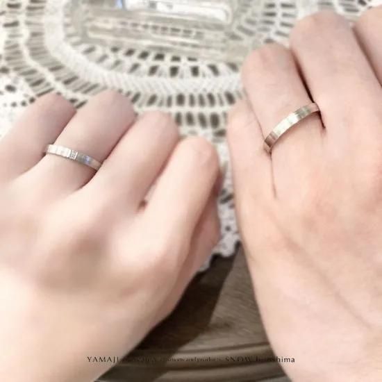 すこし幅広の平打ちデザインですが、すっきりと落ち着いた雰囲気もあり男女問わず人気の結婚指輪です。