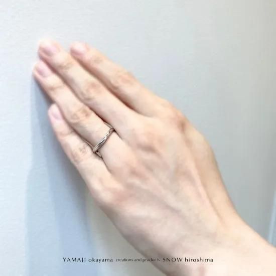 おだやかなそよ風をイメージした優しいカーブの結婚指輪。